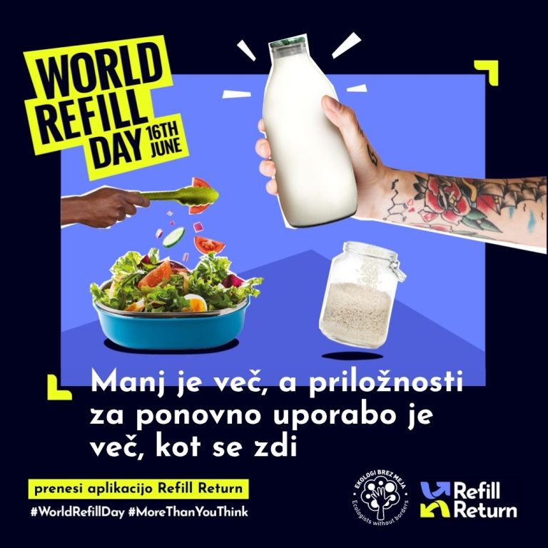 Svetovni dan rinfuze, ki ga vsako leto obeležujemo 16. junija, tako ni namenjen le ozaveščanju, gre za poziv h konkretnim dejanjem. Ponovna uporaba ni stvar prihodnosti, že danes je del naše vsakdanjosti. To dokazujejo številne lokacije na slovenskem portalu Manj je več, kjer je mogoča uporaba lastne embalaže ter s tem udejanjanje principa napolni in vrni. Mednje sodijo tako javno dostopni viri pitne vode kot tudi številne točke nakupa, prav portal za spodbujanje ponovne uporabe, ki ga upravljajo Ekologi brez meja, pa je bil vir za dopolnitev mednarodne mobilne baze podatkov. Slovenija je tako postavljena na mednarodni zemljevid ponovne uporabe, podatki pa tako še bolj dostopni in uporabni za tuje obiskovalce.