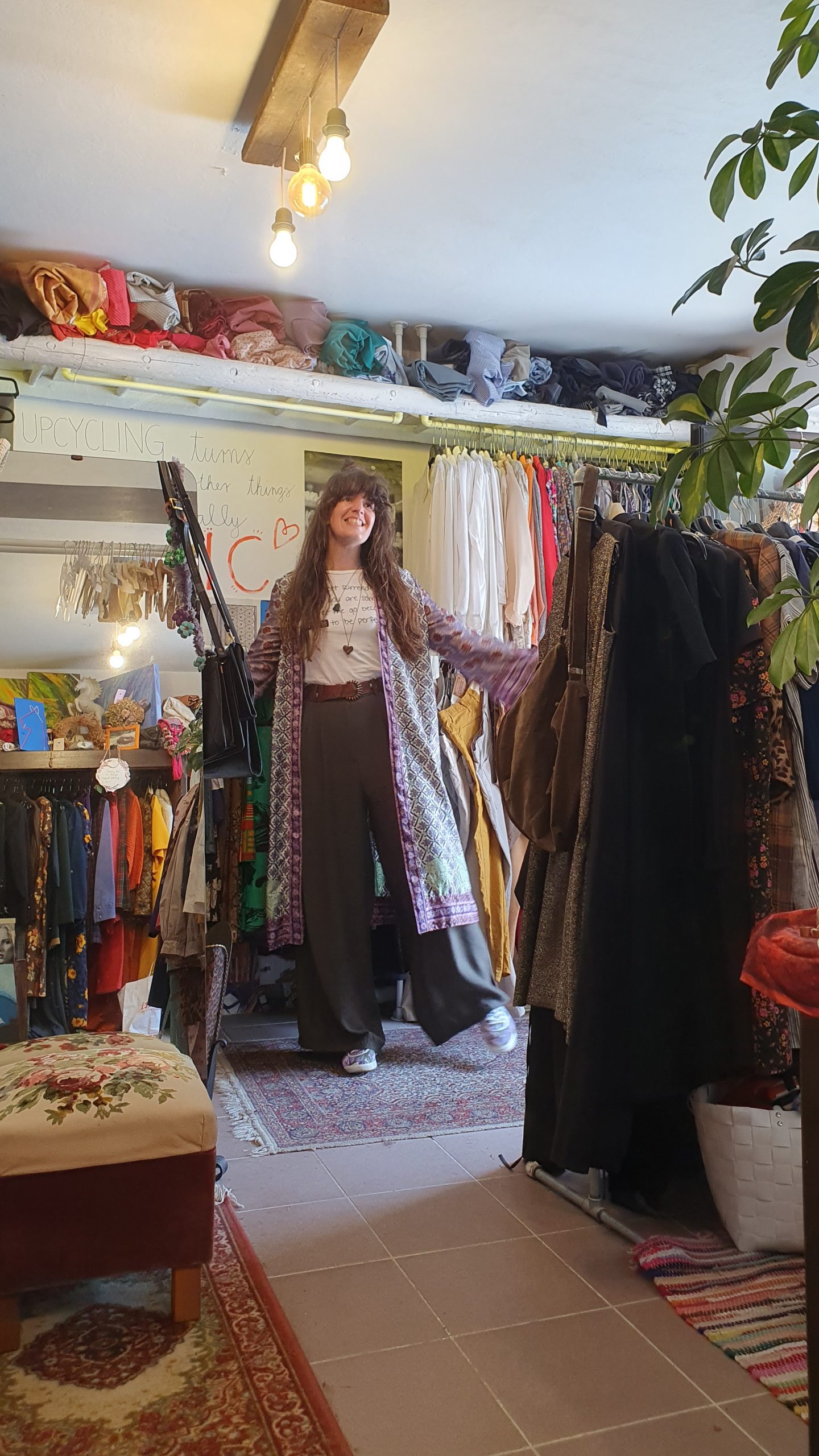 ponuja unikatna vintage oblačila, predelane kose in izdelke iz recikliranih materialov, kot so modni dodatki iz starega usnja, ki je nekoč služilo kot krilo. Vsak izdelek je skrbno izbran ali ročno predelan z mislijo na trajnost, kvaliteto in zgodbo, ki jo nosi.